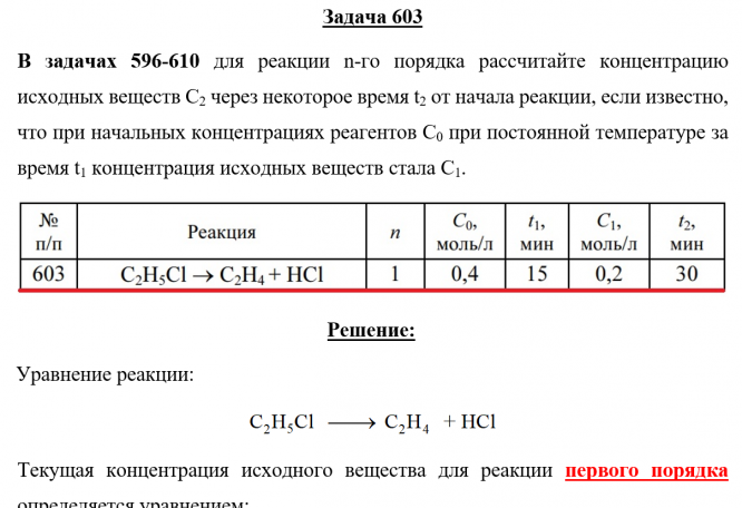 Для студентов по предмету ХимияЗадача 603 - для реакции n-го порядка рассчитайте концентрацию исходных веществ С2 через некоторое время t2 от начала реакции, если известно, что при Задача 603 - для реакции n-го порядка рассчитайте концентрацию исходных веществ С2 через некоторое время t2 от начала реакции, если известно, что при