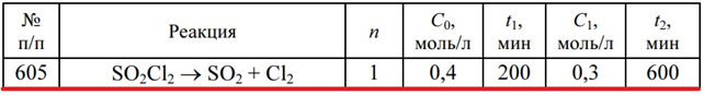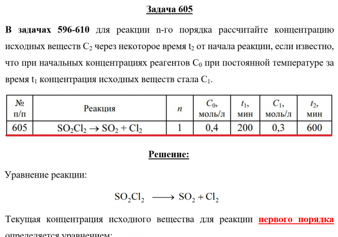 Для студентов по предмету ХимияЗадача 605 - для реакции n-го порядка рассчитайте концентрацию исходных веществ С2 через некоторое время t2 от начала реакции, если известно, что при Задача 605 - для реакции n-го порядка рассчитайте концентрацию исходных веществ С2 через некоторое время t2 от начала реакции, если известно, что при