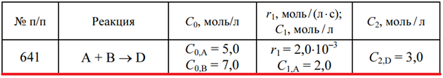 Задача 641 - для данной элементарной реакции рассчитайте скорость реакции r2 при указанной концентрации С2 одного из компонентов, если известны начальные концентрации реагентов С0 и скорость реакции r1 при определенной концентрации одного из компонен