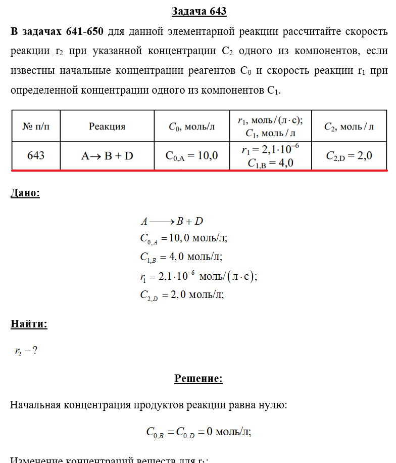 Для студентов по предмету ХимияЗадача 643 - для данной элементарной реакции рассчитайте скорость реакции r2 при указанной концентрации С2 одного из компонентов, если известны начальЗадача 643 - для данной элементарной реакции рассчитайте скорость реакции r2 при указанной концентрации С2 одного из компонентов, если известны началь