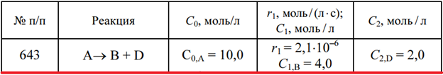 Задача 643 - для данной элементарной реакции рассчитайте скорость реакции r2 при указанной концентрации С2 одного из компонентов, если известны начальные концентрации реагентов С0 и скорость реакции r1 при определенной концентрации одного из компонен