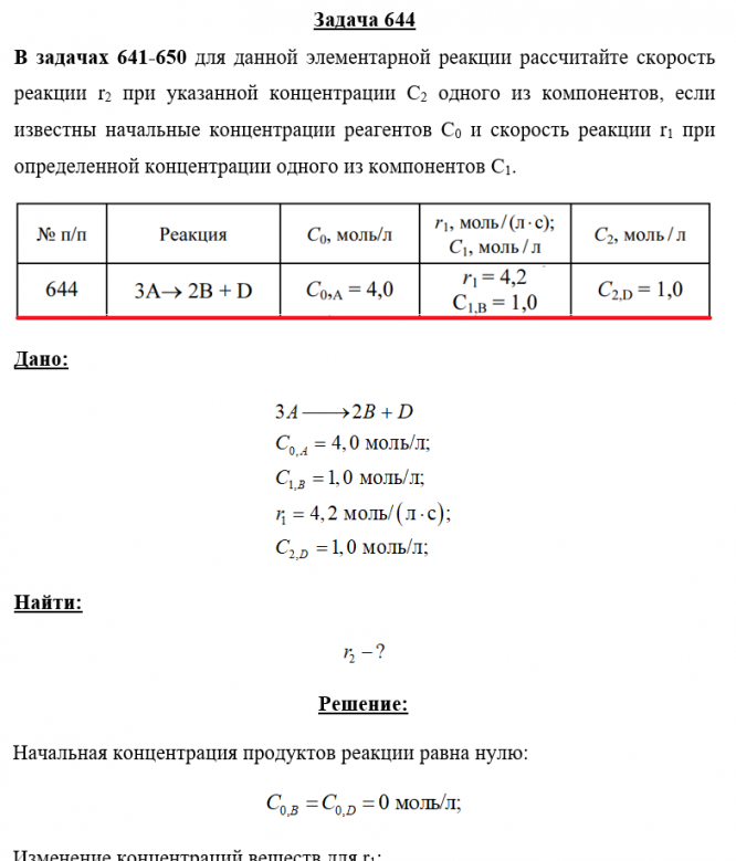 Для студентов по предмету ХимияЗадача 644 - для данной элементарной реакции рассчитайте скорость реакции r2 при указанной концентрации С2 одного из компонентов, если известны начальЗадача 644 - для данной элементарной реакции рассчитайте скорость реакции r2 при указанной концентрации С2 одного из компонентов, если известны началь