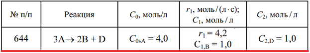Задача 644 - для данной элементарной реакции рассчитайте скорость реакции r2 при указанной концентрации С2 одного из компонентов, если известны начальные концентрации реагентов С0 и скорость реакции r1 при определенной концентрации одного из компонен