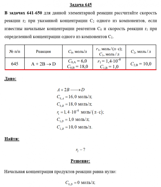 Для студентов по предмету ХимияЗадача 645 - для данной элементарной реакции рассчитайте скорость реакции r2 при указанной концентрации С2 одного из компонентов, если известны начальЗадача 645 - для данной элементарной реакции рассчитайте скорость реакции r2 при указанной концентрации С2 одного из компонентов, если известны началь