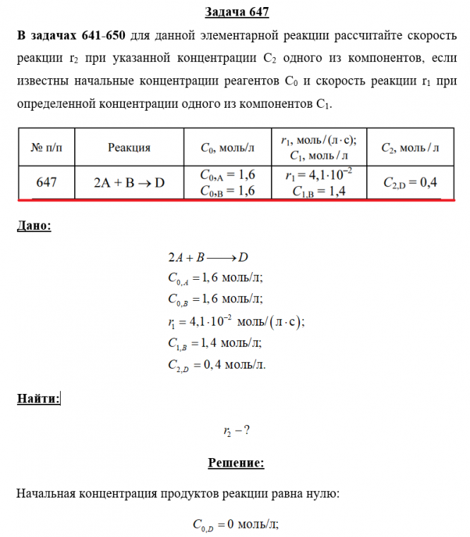 Для студентов по предмету ХимияЗадача 647 - для данной элементарной реакции рассчитайте скорость реакции r2 при указанной концентрации С2 одного из компонентов, если известны начальЗадача 647 - для данной элементарной реакции рассчитайте скорость реакции r2 при указанной концентрации С2 одного из компонентов, если известны началь