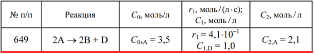 Задача 649 - для данной элементарной реакции рассчитайте скорость реакции r2 при указанной концентрации С2 одного из компонентов, если известны начальные концентрации реагентов С0 и скорость реакции r1 при определенной концентрации одного из компонен