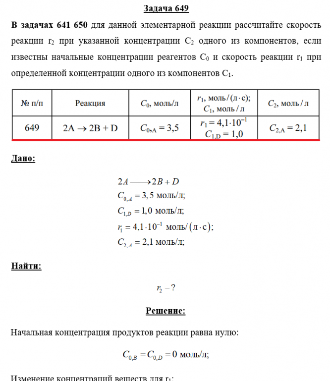Для студентов по предмету ХимияЗадача 649 - для данной элементарной реакции рассчитайте скорость реакции r2 при указанной концентрации С2 одного из компонентов, если известны начальЗадача 649 - для данной элементарной реакции рассчитайте скорость реакции r2 при указанной концентрации С2 одного из компонентов, если известны началь