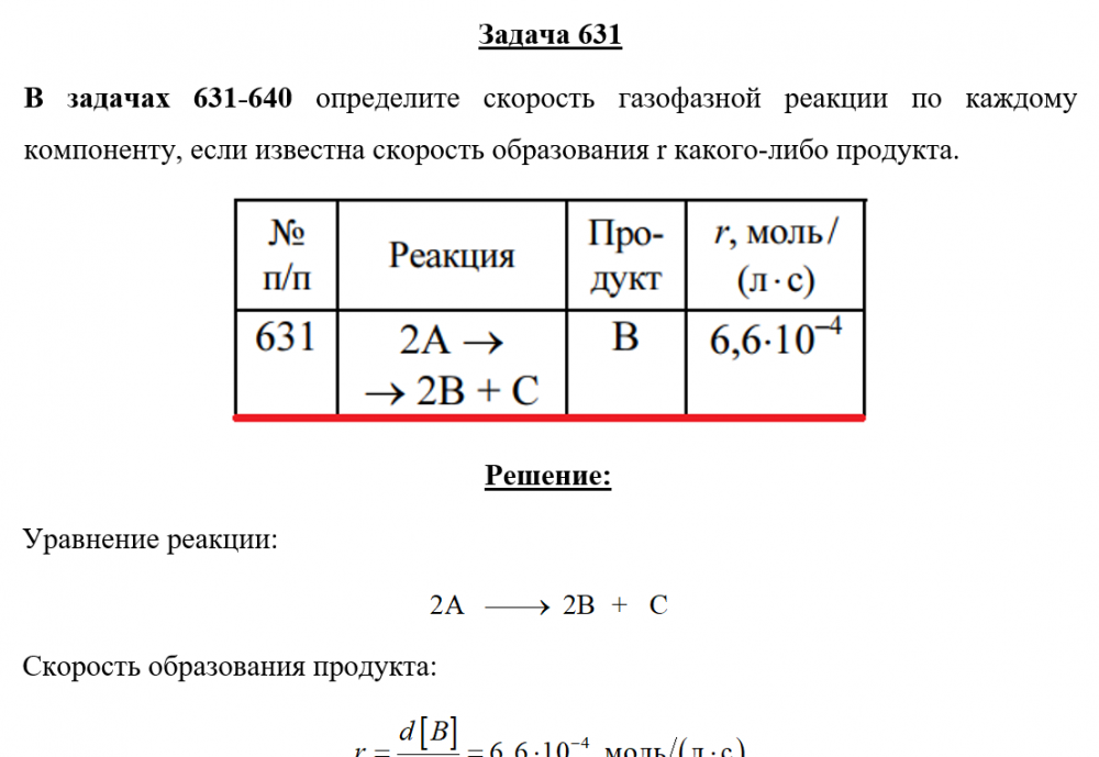 Для студентов по предмету ХимияЗадача 631 - определите скорость газофазной реакции по каждому компоненту, если известна скорость образования r какого-либо продукта.Задача 631 - определите скорость газофазной реакции по каждому компоненту, если известна скорость образования r какого-либо продукта.