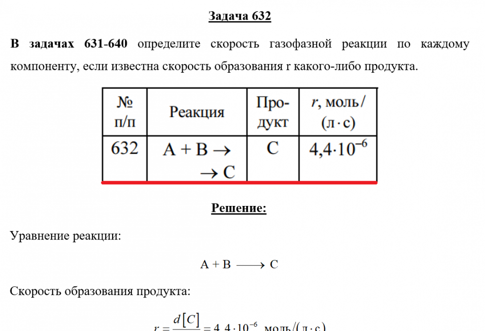 Для студентов по предмету ХимияЗадача 632 - определите скорость газофазной реакции по каждому компоненту, если известна скорость образования r какого-либо продукта.Задача 632 - определите скорость газофазной реакции по каждому компоненту, если известна скорость образования r какого-либо продукта.