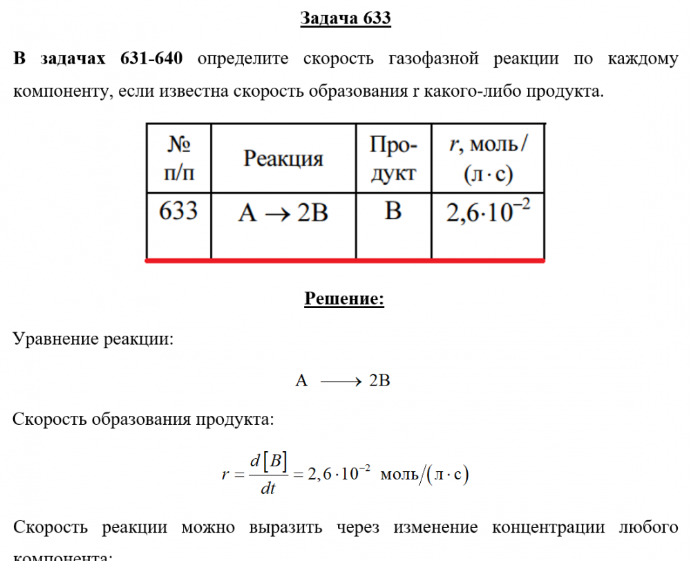 Для студентов по предмету ХимияЗадача 633 - определите скорость газофазной реакции по каждому компоненту, если известна скорость образования r какого-либо продукта.Задача 633 - определите скорость газофазной реакции по каждому компоненту, если известна скорость образования r какого-либо продукта.