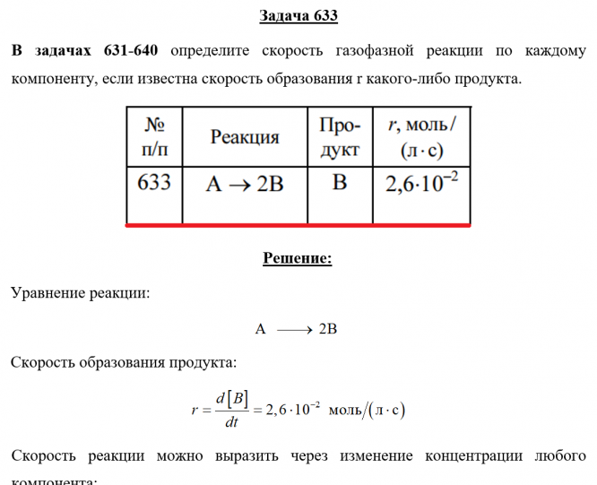 Главная » Учебные материалы » Химия » Решения задач » Несколько классов/семестров » Номер 633 » Задача 633 - определите скорость газофазной реакции по каждому компоненту, если известна скорость образования r какого-либо продукта.