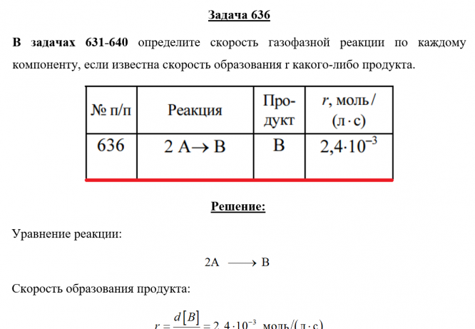 Главная » Учебные материалы » Химия » Решения задач » Несколько классов/семестров » Номер 636 » Задача 636 - определите скорость газофазной реакции по каждому компоненту, если известна скорость образования r какого-либо продукта.