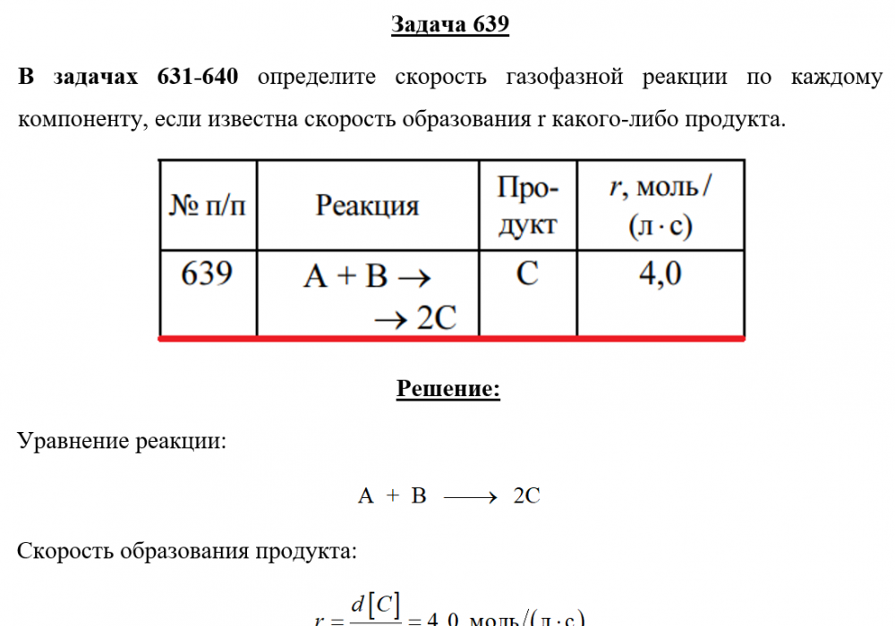 Для студентов по предмету ХимияЗадача 639 - определите скорость газофазной реакции по каждому компоненту, если известна скорость образования r какого-либо продукта.Задача 639 - определите скорость газофазной реакции по каждому компоненту, если известна скорость образования r какого-либо продукта.