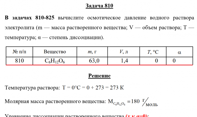 Задача 810 - вычислите осмотическое давление водного раствора электролита (m — масса растворенного вещества; V — объем раствора; Т — температура; α — степень диссоциации).