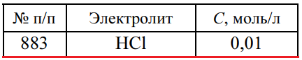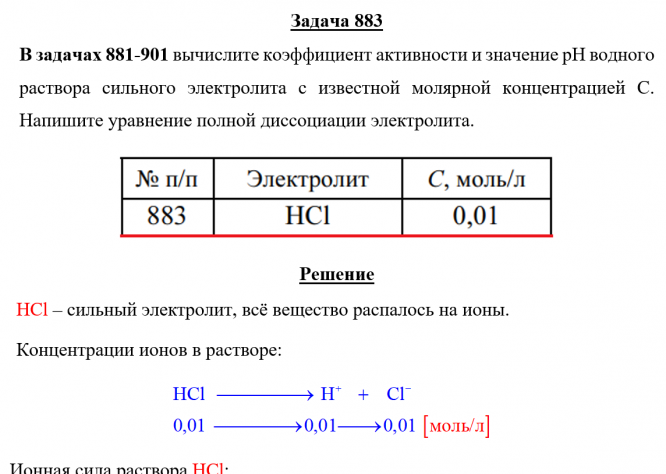 Задача 883 - вычислите коэффициент активности и значение pH водного раствора сильного электролита с известной молярной концентрацией С. Напишите уравнение полной диссоциации электролита.