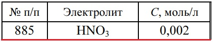 Задача 885 - вычислите коэффициент активности и значение pH водного раствора сильного электролита с известной молярной концентрацией С. Напишите уравнение полной диссоциации электролита.