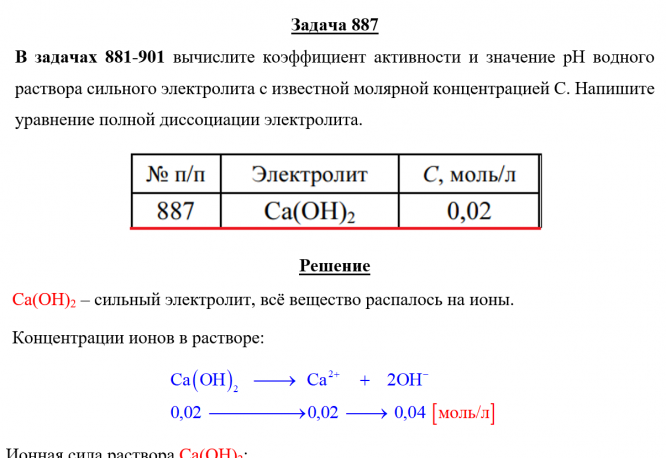 Для студентов по предмету ХимияЗадача 887 - вычислите коэффициент активности и значение pH водного раствора сильного электролита с известной молярной концентрацией С. Напишите уравнЗадача 887 - вычислите коэффициент активности и значение pH водного раствора сильного электролита с известной молярной концентрацией С. Напишите уравн
