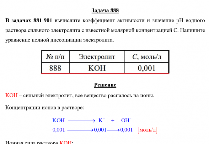 Главная » Учебные материалы » Химия » Решения задач » Несколько классов/семестров » Номер 888 » Задача 888 - вычислите коэффициент активности и значение pH водного раствора сильного электролита с известной молярной концентрацией С. Напишите уравнение полной диссоциации электролита.