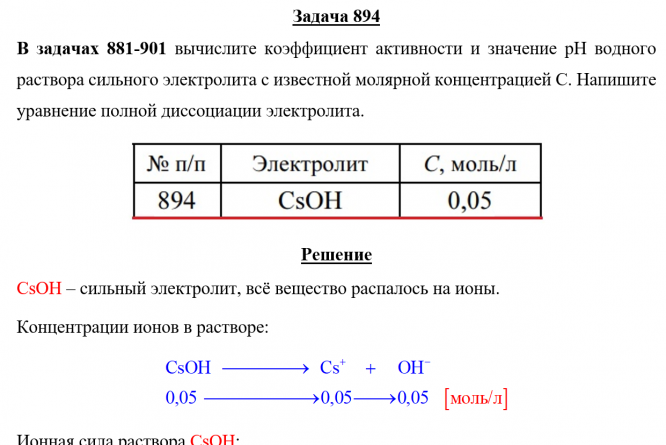 Задача 894 - вычислите коэффициент активности и значение pH водного раствора сильного электролита с известной молярной концентрацией С. Напишите уравнение полной диссоциации электролита.