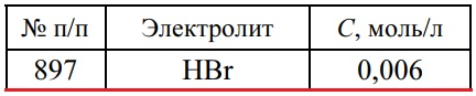 Задача 897 - вычислите коэффициент активности и значение pH водного раствора сильного электролита с известной молярной концентрацией С. Напишите уравнение полной диссоциации электролита.