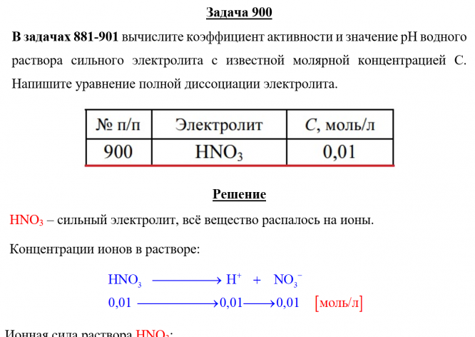 Главная » Учебные материалы » Химия » Решения задач » Несколько классов/семестров » Номер 900 » Задача 900 - вычислите коэффициент активности и значение pH водного раствора сильного электролита с известной молярной концентрацией С. Напишите уравнение полной диссоциации электролита.