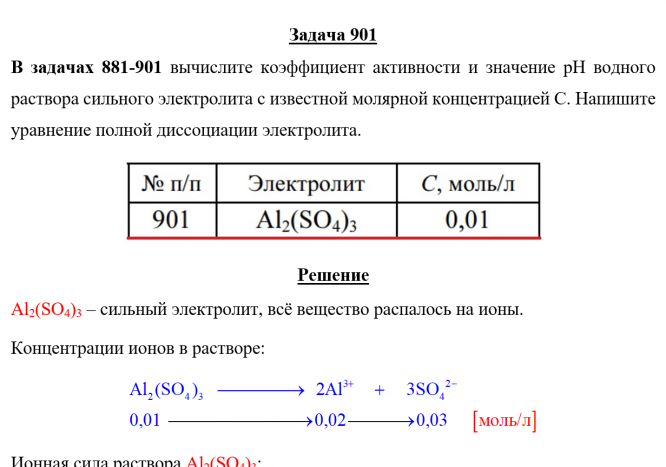 Главная » Учебные материалы » Химия » Решения задач » Несколько классов/семестров » Номер 901 » Задача 901 - вычислите коэффициент активности и значение pH водного раствора сильного электролита с известной молярной концентрацией С. Напишите уравнение полной диссоциации электролита.