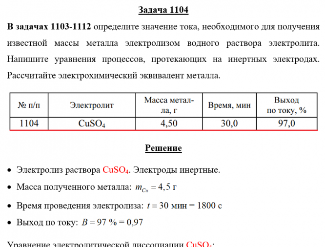 Задача 1104 - определите значение тока, необходимого для получения известной массы металла электролизом водного раствора электролита. Напишите уравнения процессов, протекающих на инертных электродах. Рассчитайте электрохимический эквивалент металла.