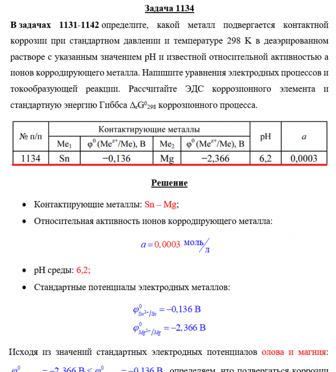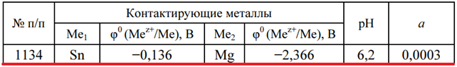 Задача 1134 - определите, какой металл подвергается контактной коррозии при стандартном давлении и температуре 298 K в деаэрированном растворе с указанным значением рН и известной относительной активностью a ионов корродирующего металла. Напишите ура