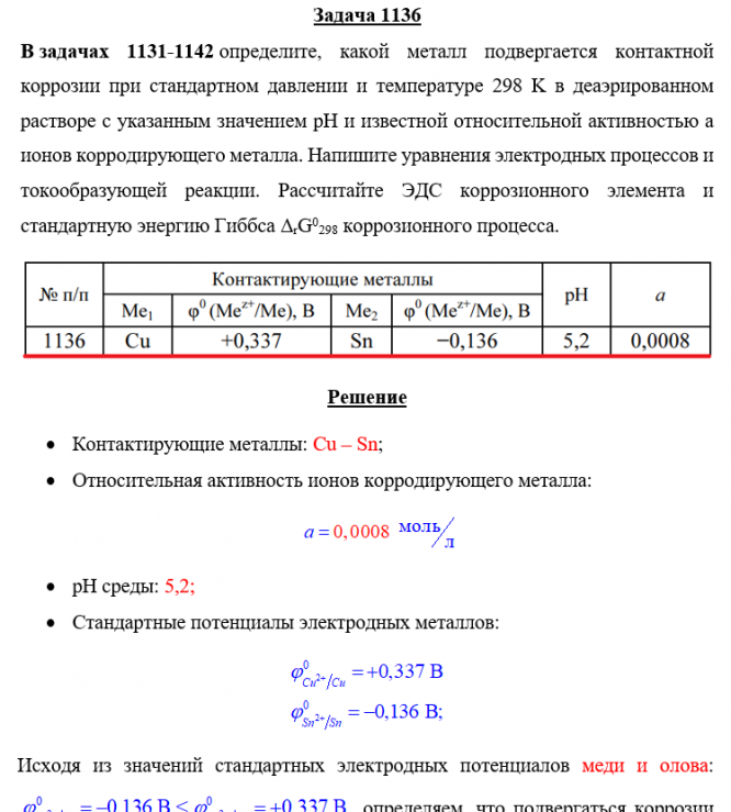 Для студентов по предмету ХимияЗадача 1136 - определите, какой металл подвергается контактной коррозии при стандартном давлении и температуре 298 K в деаэрированном растворе с указаЗадача 1136 - определите, какой металл подвергается контактной коррозии при стандартном давлении и температуре 298 K в деаэрированном растворе с указа