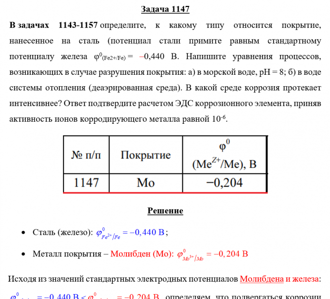 Для студентов по предмету ХимияЗадача 1147 - определите, к какому типу относится покрытие, нанесенное на сталь (потенциал стали примите равным стандартному потенциалу железа φ0(Fe2+Задача 1147 - определите, к какому типу относится покрытие, нанесенное на сталь (потенциал стали примите равным стандартному потенциалу железа φ0(Fe2+