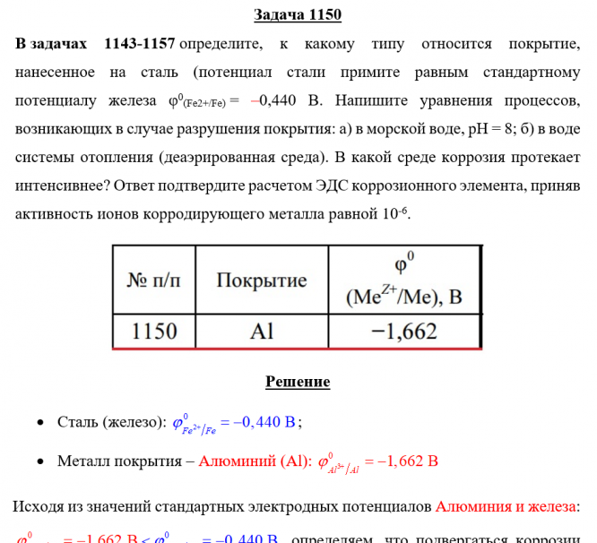 Для студентов по предмету ХимияЗадача 1150 - определите, к какому типу относится покрытие, нанесенное на сталь (потенциал стали примите равным стандартному потенциалу железа φ0(Fe2+Задача 1150 - определите, к какому типу относится покрытие, нанесенное на сталь (потенциал стали примите равным стандартному потенциалу железа φ0(Fe2+