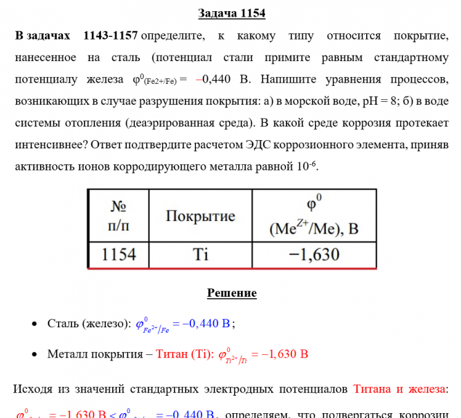 Для студентов по предмету ХимияЗадача 1154 - определите, к какому типу относится покрытие, нанесенное на сталь (потенциал стали примите равным стандартному потенциалу железа φ0(Fe2+Задача 1154 - определите, к какому типу относится покрытие, нанесенное на сталь (потенциал стали примите равным стандартному потенциалу железа φ0(Fe2+
