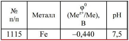 Задача 1115 - определите возможность коррозии металла при стандартном давлении и температуре 298 K в аэрированном водном растворе с указанным значением рН. Составьте схему коррозионного элемента, напишите уравнения электродных процессов и токообразую
