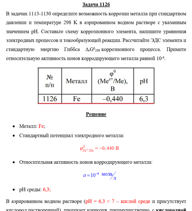 Для студентов по предмету ХимияЗадача 1126 - определите возможность коррозии металла при стандартном давлении и температуре 298 K в аэрированном водном растворе с указанным значениеЗадача 1126 - определите возможность коррозии металла при стандартном давлении и температуре 298 K в аэрированном водном растворе с указанным значение
