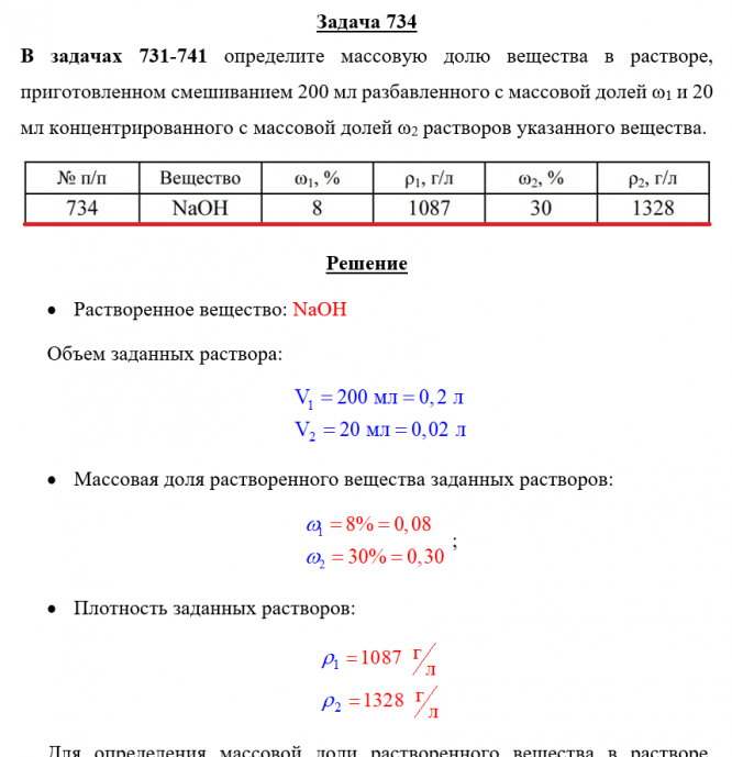 Для студентов по предмету ХимияЗадача 734 - определите массовую долю вещества в растворе, приготовленном смешиванием 200 мл разбавленного с массовой долей ω1 и 20 мл концентрированнЗадача 734 - определите массовую долю вещества в растворе, приготовленном смешиванием 200 мл разбавленного с массовой долей ω1 и 20 мл концентрированн
