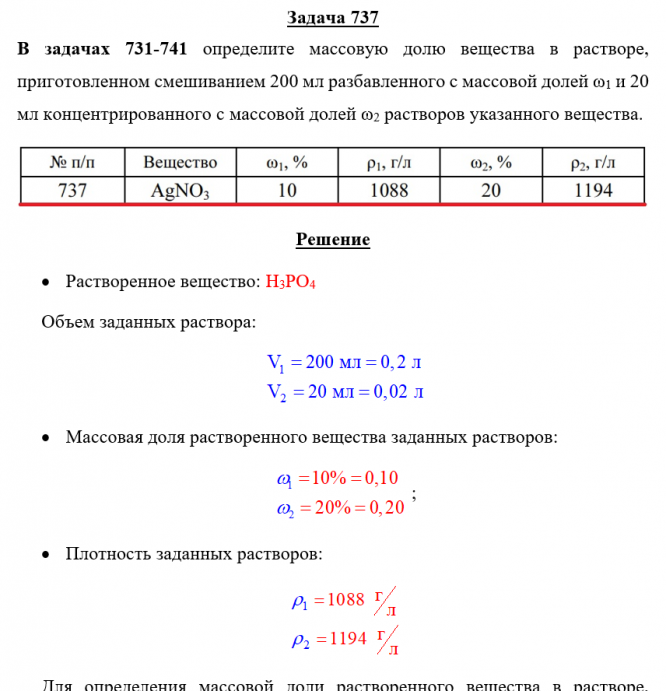 Для студентов по предмету ХимияЗадача 737 - определите массовую долю вещества в растворе, приготовленном смешиванием 200 мл разбавленного с массовой долей ω1 и 20 мл концентрированнЗадача 737 - определите массовую долю вещества в растворе, приготовленном смешиванием 200 мл разбавленного с массовой долей ω1 и 20 мл концентрированн