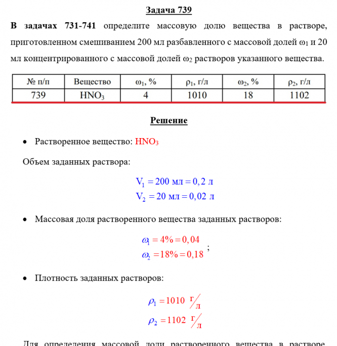 Для студентов по предмету ХимияЗадача 739 - определите массовую долю вещества в растворе, приготовленном смешиванием 200 мл разбавленного с массовой долей ω1 и 20 мл концентрированнЗадача 739 - определите массовую долю вещества в растворе, приготовленном смешиванием 200 мл разбавленного с массовой долей ω1 и 20 мл концентрированн
