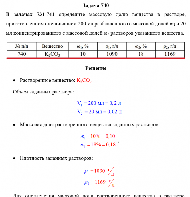 Для студентов по предмету ХимияЗадача 740 - определите массовую долю вещества в растворе, приготовленном смешиванием 200 мл разбавленного с массовой долей ω1 и 20 мл концентрированнЗадача 740 - определите массовую долю вещества в растворе, приготовленном смешиванием 200 мл разбавленного с массовой долей ω1 и 20 мл концентрированн
