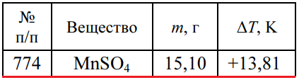 Главная » Учебные материалы » Химия » Решения задач » Несколько классов/семестров » Номер 774 » Задача 774 - вычислите, сколько теплоты выделяется или поглощается при растворении массы m вещества в 1 кг воды, если известно повышение (+ΔТ) или понижение (-ΔТ) температуры раствора. Удельную теплоемкость раствора примите равной удельной теплоемкос