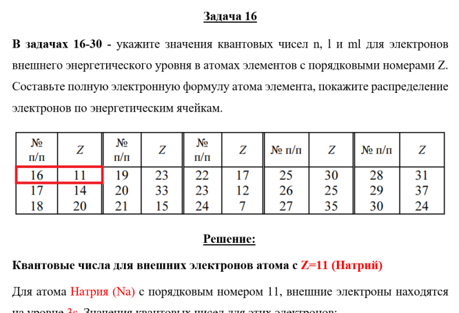 Задача 16 - укажите значения квантовых чисел n, l и ml для электронов внешнего энергетического уровня в атомах элементов с порядковыми номерами Z. Составьте полную электронную формулу атома элемента, покажите распределение электронов по энергетически