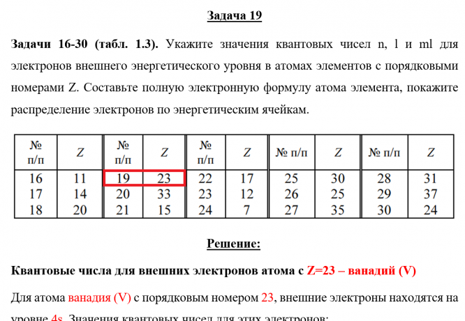 Для студентов по предмету ХимияЗадача 19 - Укажите значения квантовых чисел n, l и ml для электронов внешнего энергетического уровня в атомах элементов с порядковыми номерами Z. СосЗадача 19 - Укажите значения квантовых чисел n, l и ml для электронов внешнего энергетического уровня в атомах элементов с порядковыми номерами Z. Сос
