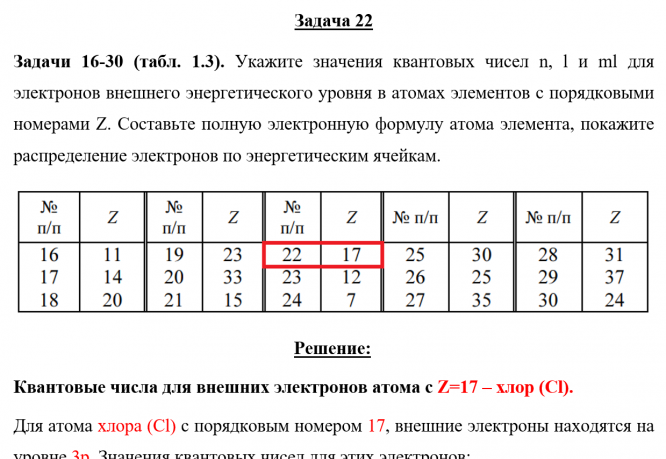 Для студентов по предмету ХимияЗадача 22 - Укажите значения квантовых чисел n, l и ml для электронов внешнего энергетического уровня в атомах элементов с порядковыми номерами Z. СосЗадача 22 - Укажите значения квантовых чисел n, l и ml для электронов внешнего энергетического уровня в атомах элементов с порядковыми номерами Z. Сос