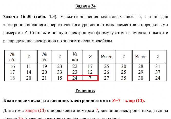 Для студентов по предмету ХимияЗадача 24 - Укажите значения квантовых чисел n, l и ml для электронов внешнего энергетического уровня в атомах элементов с порядковыми номерами Z. СосЗадача 24 - Укажите значения квантовых чисел n, l и ml для электронов внешнего энергетического уровня в атомах элементов с порядковыми номерами Z. Сос