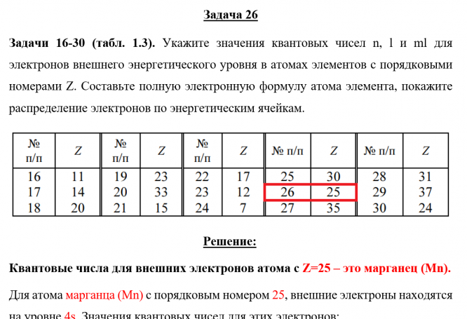 Задача 26 - Укажите значения квантовых чисел n, l и ml для электронов внешнего энергетического уровня в атомах элементов с порядковыми номерами Z. Составьте полную электронную формулу атома элемента, покажите распределение электронов по энергетически