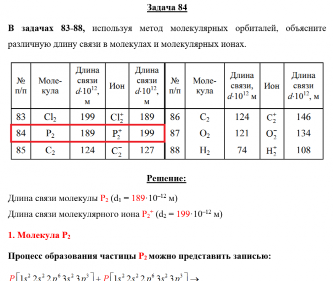 Задача 84: Задача 84 - используя метод молекулярных орбиталей, объясните различную длину связи в молекулах и молекулярных ионах.