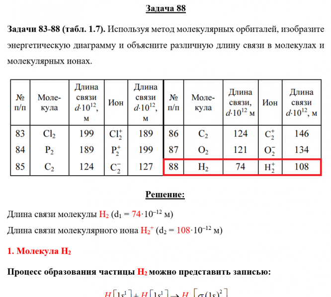 Задачи 83-88 (табл. 1.7). Используя метод молекулярных орбиталей, изобразите энергетическую диаграмму и объясните различную длину связи в молекулах и молекулярных ионах.