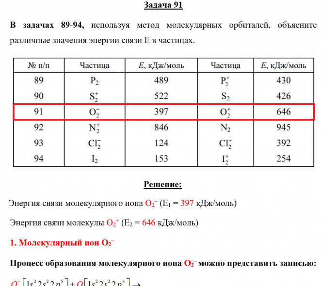 Задача 91: Задача 91 - используя метод молекулярных орбиталей, объясните различные значения энергии связи E в частицах.