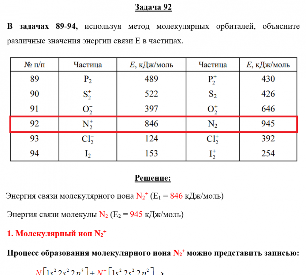Задача 92: Задача 92 - используя метод молекулярных орбиталей, объясните различные значения энергии связи E в частицах.