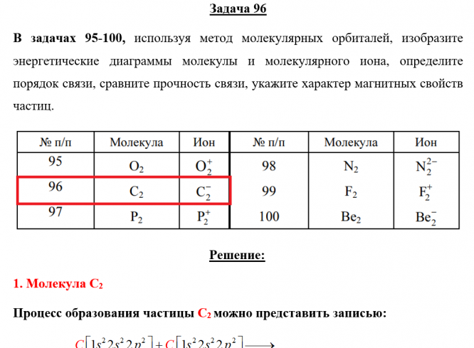 Задача 96 - используя метод молекулярных орбиталей, изобразите энергетические диаграммы молекулы и молекулярного иона, определите порядок связи, сравните прочность связи, укажите характер магнитных свойств частиц.