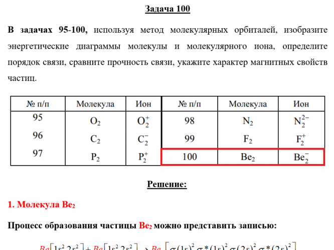 Для студентов по предмету ХимияЗадача 100 - используя метод молекулярных орбиталей, изобразите энергетические диаграммы молекулы и молекулярного иона, определите порядок связи, сравЗадача 100 - используя метод молекулярных орбиталей, изобразите энергетические диаграммы молекулы и молекулярного иона, определите порядок связи, срав